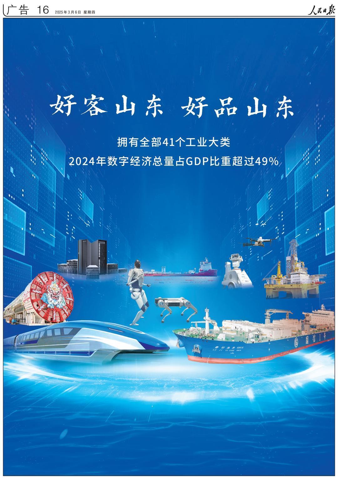 3月6日,《人民日报》在第16版以《好客山东 好品山东》为题,对山东“智”造进行整版推介。