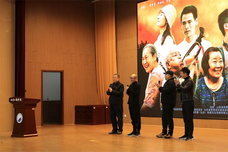 烟台市革命老区建设促进会副会长张丛、山东工商学院副校长贾海宁在首映式上致辞,电影出品方山东柒玖影业董事长张晓峰、导演王军介绍了影片拍摄情况。