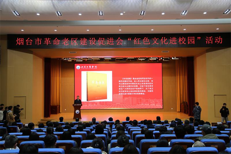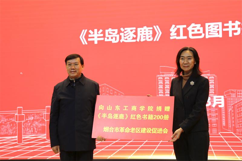 签约仪式后,举办了捐赠红色书籍《半岛逐鹿》和电影《寻找英雄》烟台首映式两项“红色文化进校园”活动。烟台市革命老区建设促进会副会长刘玉昂代表市老促会向山东工商学院捐赠红色书籍《半岛逐鹿》。《半岛逐鹿》以解放战争时期胶东保卫战为背景,讲述了胶东革命老区广大军民为了保卫抗日战争和土地改革的胜利果实,面对国民党军队的进攻,同仇敌忾、奋起自卫的英勇事迹。