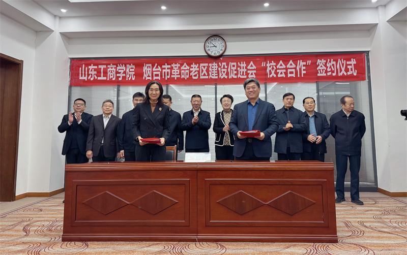 水母网3月7日讯(记者 李洪涛)3月7日上午,烟台市革命老区建设促进会与山东工商学院共同举办“校会合作”签约仪式暨“红色文化进校园”活动。烟台市革命老区建设促进会会长李淑芹、执行会长李树军、副会长刘玉昂、张丛、李勃、副会长兼秘书长李宪洲,山东工商学院校长陶虎、副校长刘向峰、贾海宁等领导出席“校会合作”签约仪式。烟台市革命老区建设促进会副会长兼秘书长李宪洲和山东工商学院副校长贾海宁在“校会战略合作”协议上签字。活动由山东工商学院副校长刘向锋主持。