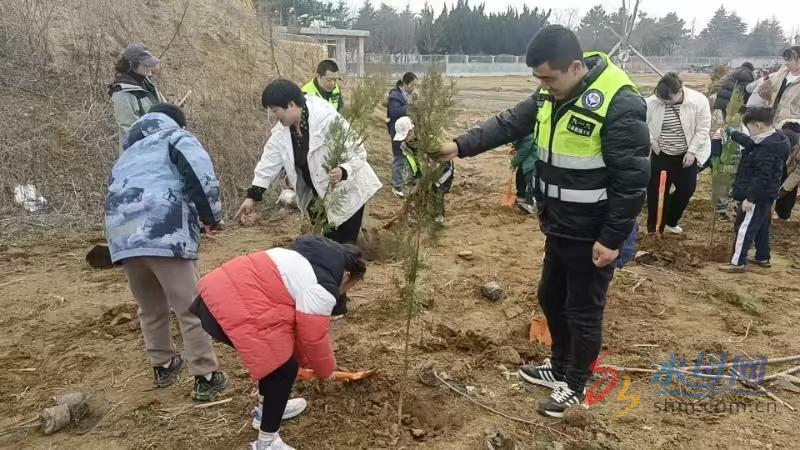 当日下午,家长和孩子们陆续来到活动现场。在志愿者引导下,孩子们有序前往指定区域。拿到工具后,他们认真选好位置,在家长协助下开始挖土坑。尽管动作生疏,但热情不减。随后,孩子们小心翼翼地将树苗植入坑中,完成扶正、培土、浇水等步骤,并为树苗挂上亲手制作的牌子。合影时,孩子们脸上洋溢着满满的成就感。