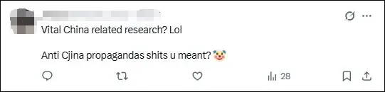 在该所X平台账号转发《华尔街日报》报道的评论区,有人说:“重要的中国相关研究?哈哈哈,你说的是反华宣传吧。”
