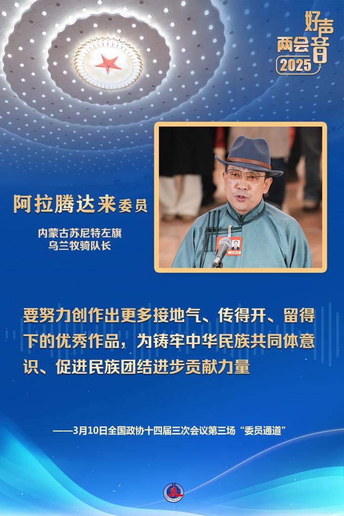 “在内蒙古大地上,活跃着75支乌兰牧骑队伍,有3000多名队员,每年开展演出1万多场。”阿拉腾达来委员说,要努力创作出更多接地气、传得开、留得下的优秀作品,为铸牢中华民族共同体意识、促进民族团结进步贡献力量。
