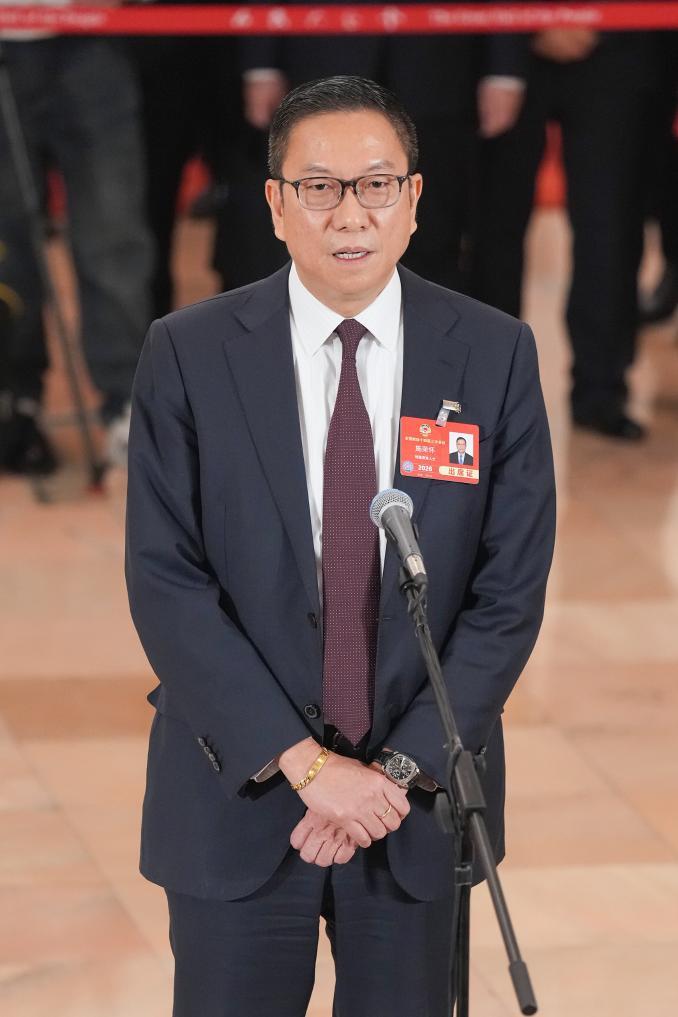3月10日,全国政协十四届三次会议第三场“委员通道”集体采访活动在北京人民大会堂举行。这是全国政协委员施荣怀接受媒体采访。新华社记者 才扬 摄
