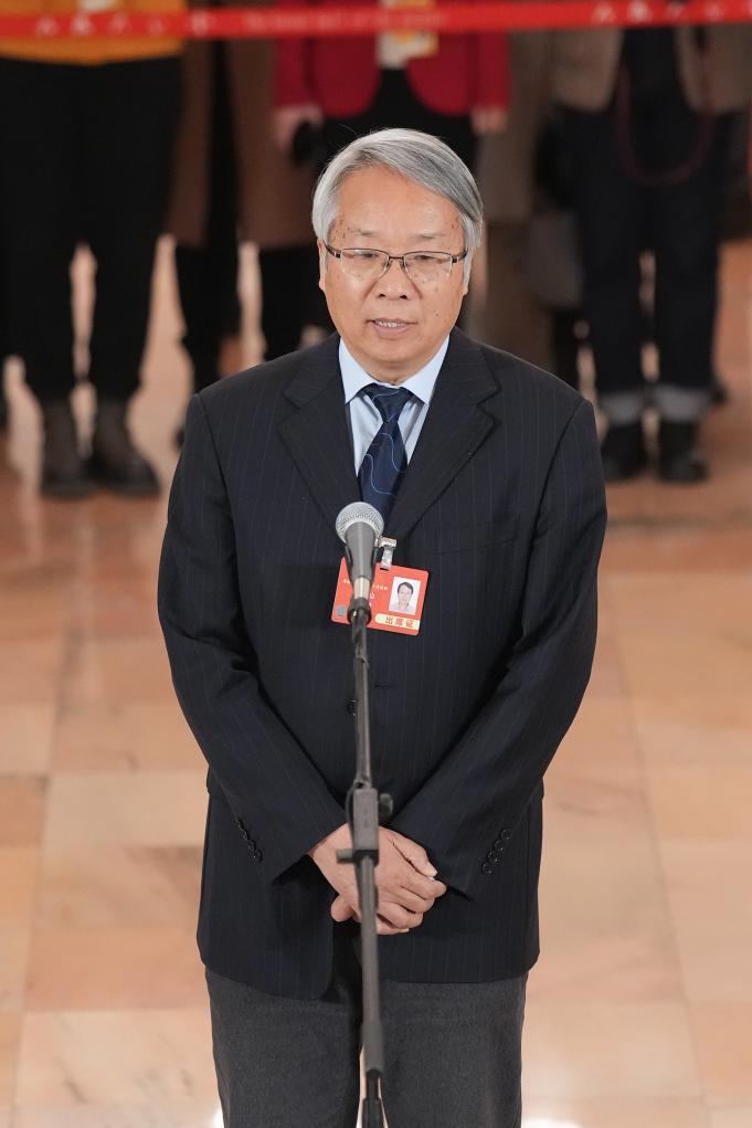 3月10日,全国政协十四届三次会议第三场“委员通道”集体采访活动在北京人民大会堂举行。这是全国政协委员何润生接受媒体采访。新华社记者 金良快 摄