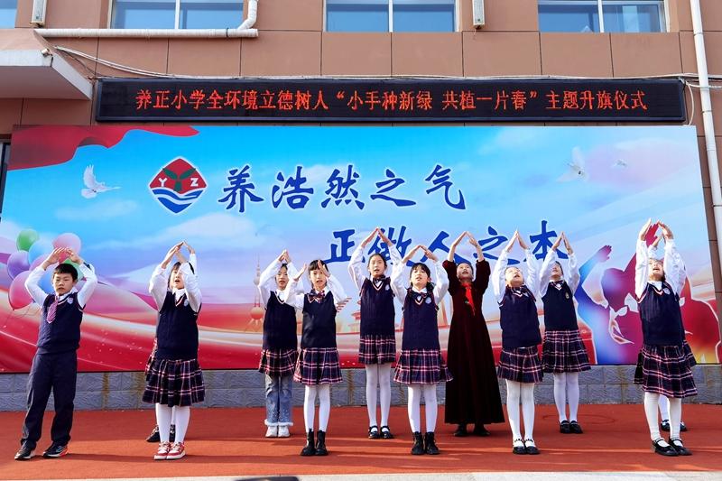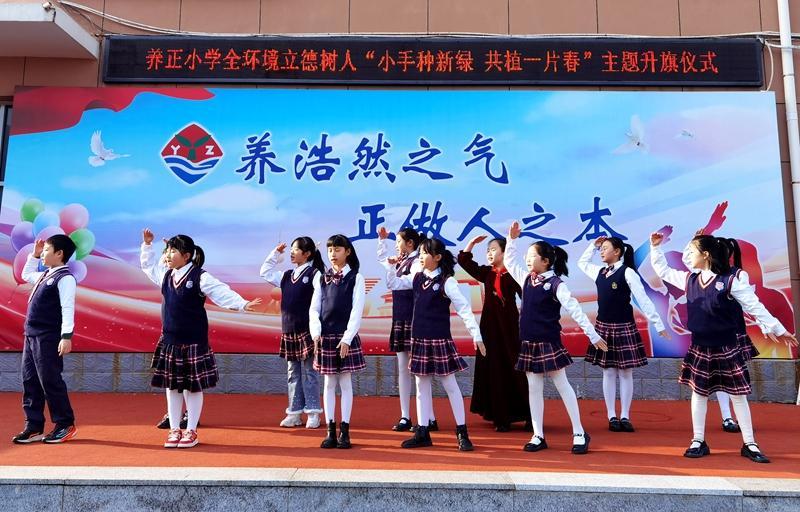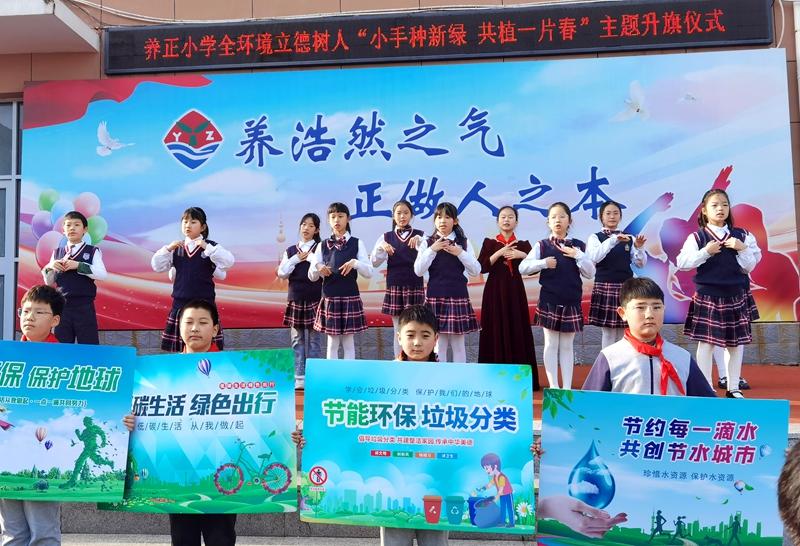 烟台养正小学开展“小手种新绿 共植一片春”主题升旗仪式