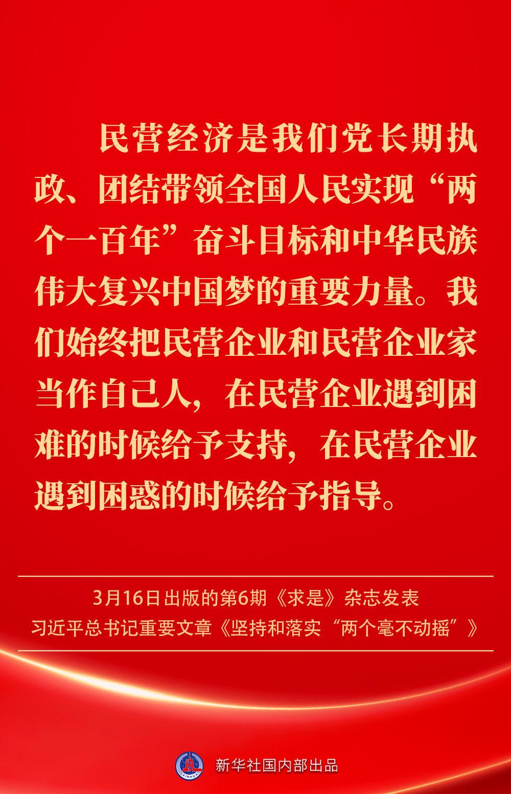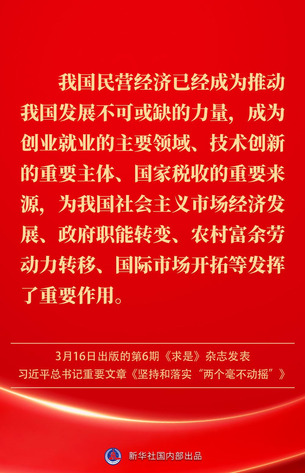 3月16日出版的第6期《求是》杂志发表习近平总书记重要文章《坚持和落实“两个毫不动摇”》。这是习近平总书记2013年11月至2025年2月期间有关重要论述的节录。如何认识“两个毫不动摇”?公有制经济和非公有制经济是怎样的关系?习近平总书记这样阐述——