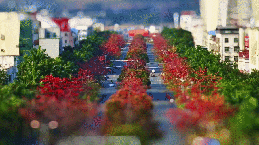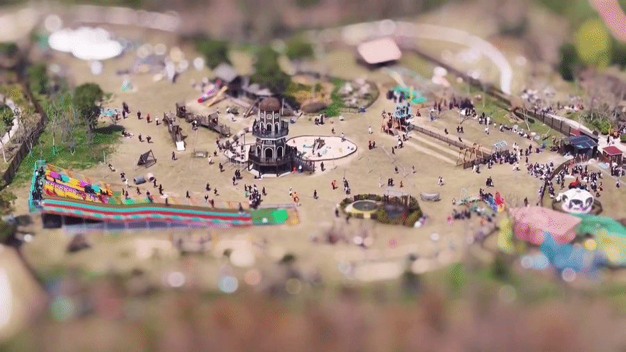 移轴镜头下,花间穿梭流连的游客与美丽的鲜花共同构成一幅生动的春日图景。