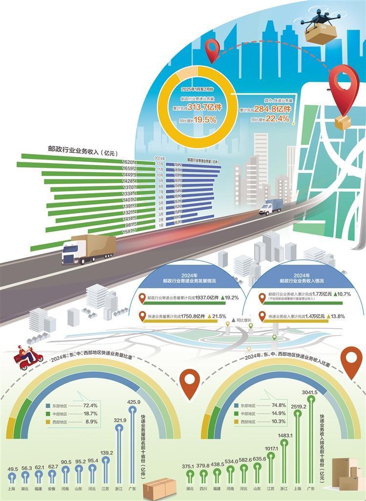 消费是经济增长的主引擎,快递业务增长源于消费需求有效释放。从中央经济工作会议强调大力提振消费、提高投资效益,全方位扩大国内需求,到今年《政府工作报告》围绕“大力提振消费”作出工作部署,再到各级政府和有关部门加码促消费,消费市场活力持续攀升。2025年,消费潜能将加速释放,快递业仍将保持稳步上升态势,更多人会享受到便捷的寄递服务。 (本文来源:经济日报 作者:吉蕾蕾)