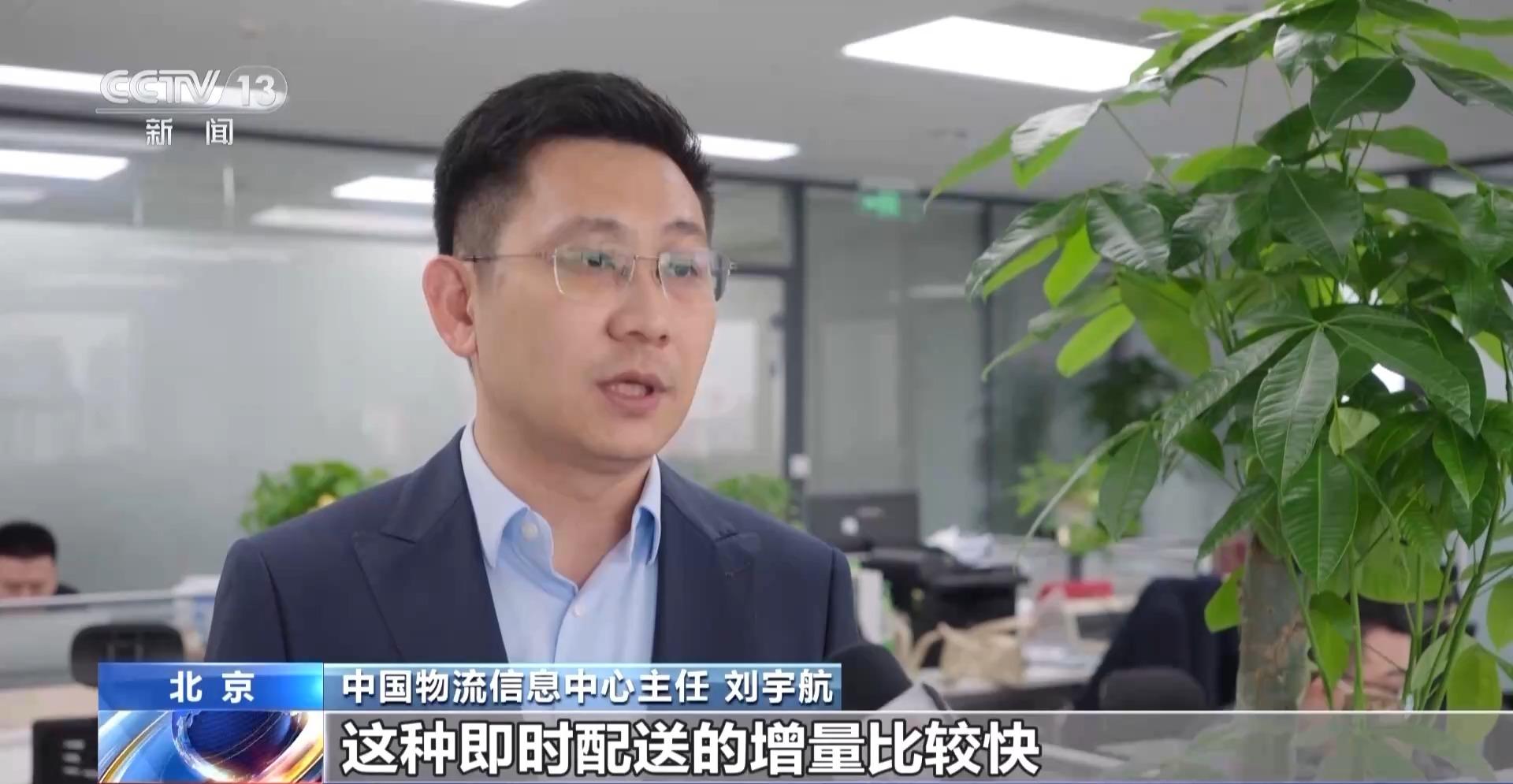 中国物流信息中心主任 刘宇航:现在整个围绕电商板块的即时配送的增量比较快,反映出居民消费活力进一步加强,同时也反映出整个电商物流的供给能力和服务能力逐步提升。
