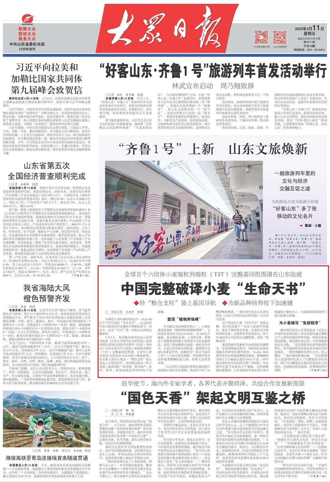 全球首个六倍体小麦端粒到端粒(T2T)完整基因组图谱在山东绘就