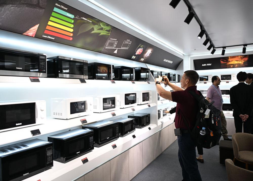 海尔海外电器产业有限公司副总裁张庆福表示,本届广交会他们带来了20多款创新的产品来展示海尔的企业形象,主要的看点是AI科技、绿色节能。“我们为中东开发了极热环境下,能够足冷量供冷的空调,这种产品比如说58℃的时候还能足冷量的供冷,68℃的时候也可以稳定运行,这个中东的消费者是非常喜欢的。”张庆福告诉记者。