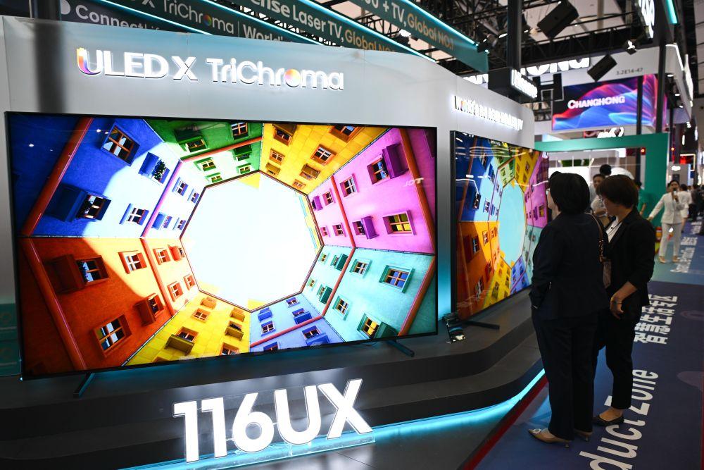 TCL科技电视市场推广总监张鹏介绍,“115寸QD-Mini LED,分区的话有两万多分区,峰值亮度有5000多nits(尼特),声音系统的话是6.2.2,十个声道的TV声音系统,更聚光的芯片、更好的光学透镜来完美地诠释这种大尺寸的产品。”