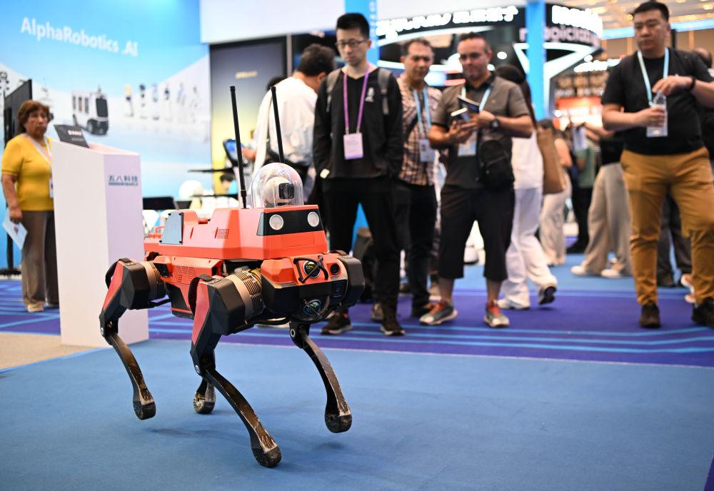 首次设立的服务机器人专区成为本届广交会上的亮点,共吸引相关优质企业46家参展。许多境外采购商高举手机,拍摄机器狗、工业外骨骼装备、自动巡航机器人、咖啡机器人等画面,不时发出惊叹。
