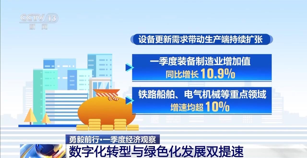 今年一季度,我国工业领域大规模设备更新加速落地,工业投资实现两位数增长,为经济高质量发展注入强劲动力。