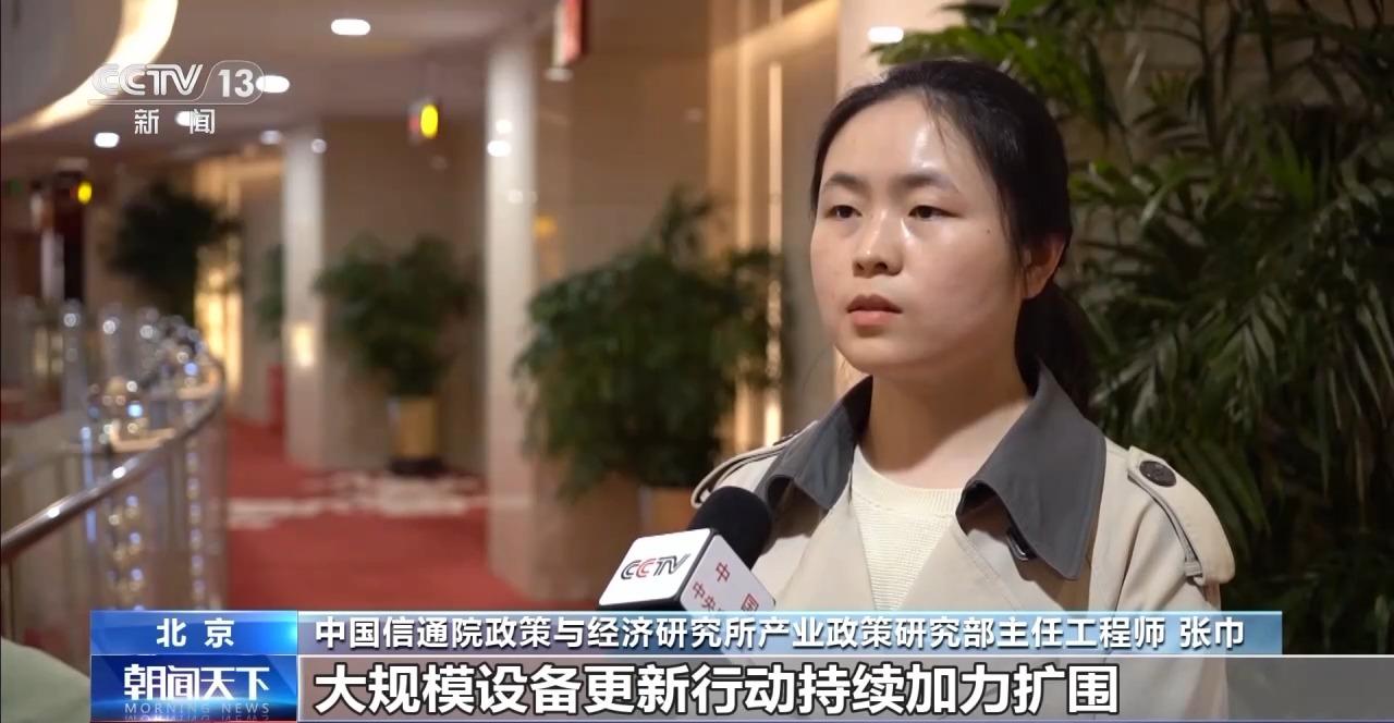 中国信通院政策与经济研究所产业政策研究部主任工程师张巾:一年多来,大规模设备更新行动持续加力扩围,各类生产设备、服务设备的更新和技术改造,有力促进产品品质稳步提升、场景不断丰富,也带动了相关产品所在行业的效益提升。