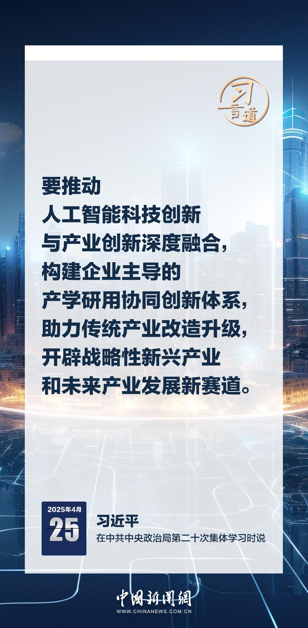 中共中央政治局4月25日就加强人工智能发展和监管进行第二十次集体学习。中共中央总书记习近平在主持学习时强调——