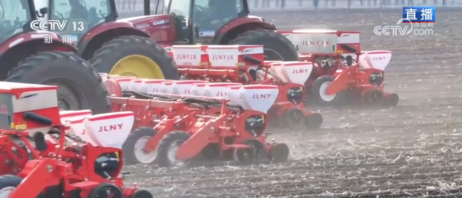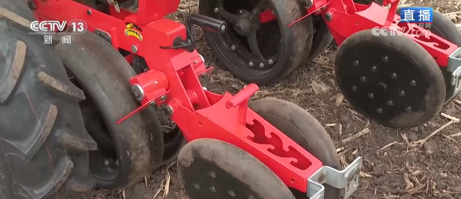 在黑河北安市东胜乡东胜村,记者身后是一片1000亩的高标准农田地块,现场有4台精量播种机正在进行大豆的播种作业,值得一提的是,这款播种机是由北安当地的农机生产企业研发制造的。