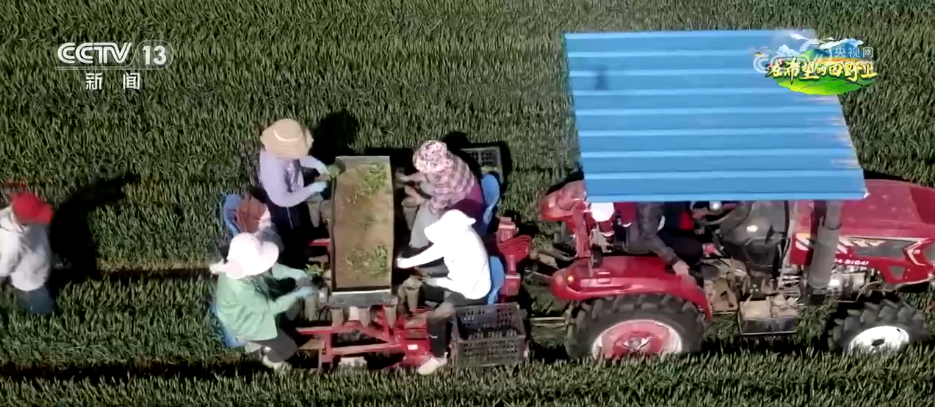 走进黄河滩的农田,绿油油的小麦在微风中摇曳,田间预留的空地上,麦椒套种移栽机正在紧张作业。