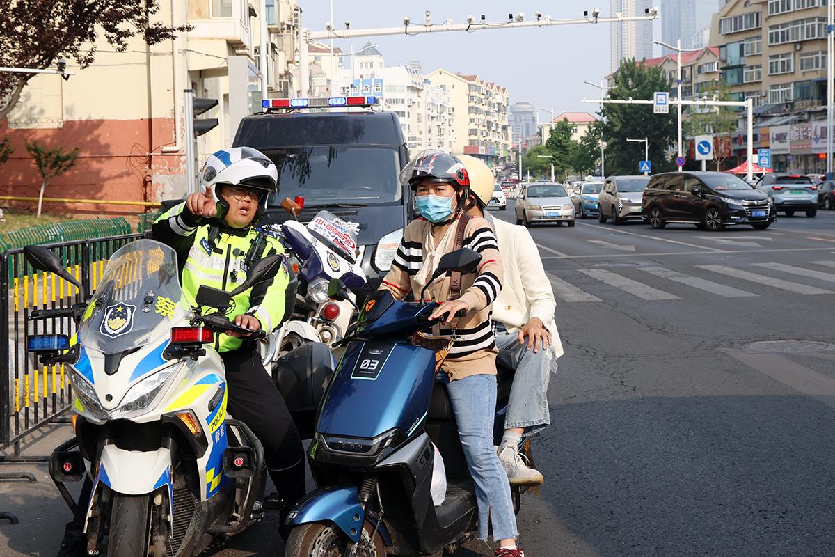 交警同志引导考生家长有序停车