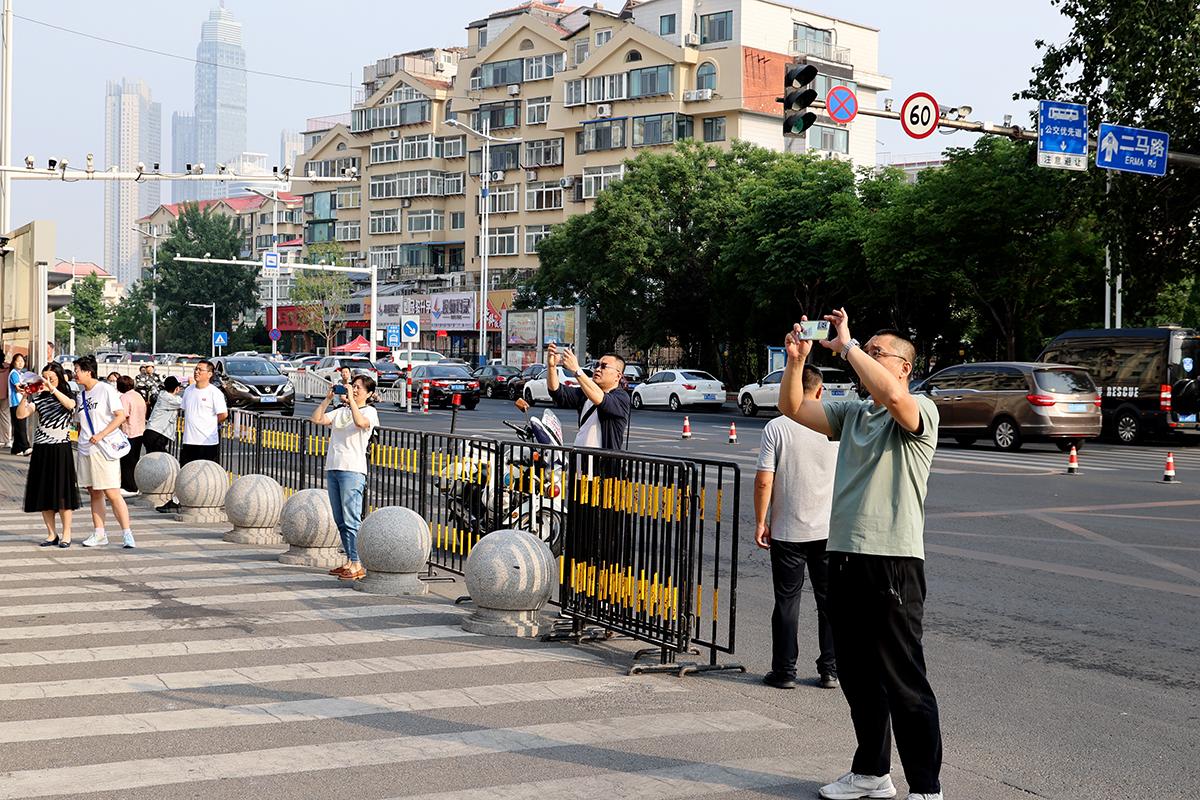 考生家长用手机记录考生这一重要时刻
