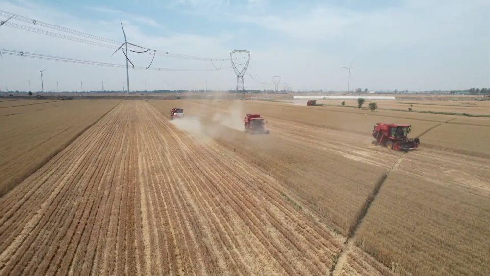 麦浪滚滚,机声隆隆。在河南省鹤壁市淇县5G数字农业示范园,3000多亩高标准农田犹如金色的海洋,大型联合收割机在田间来回穿梭,呈现出一幅喜人的现代农业丰收图景。