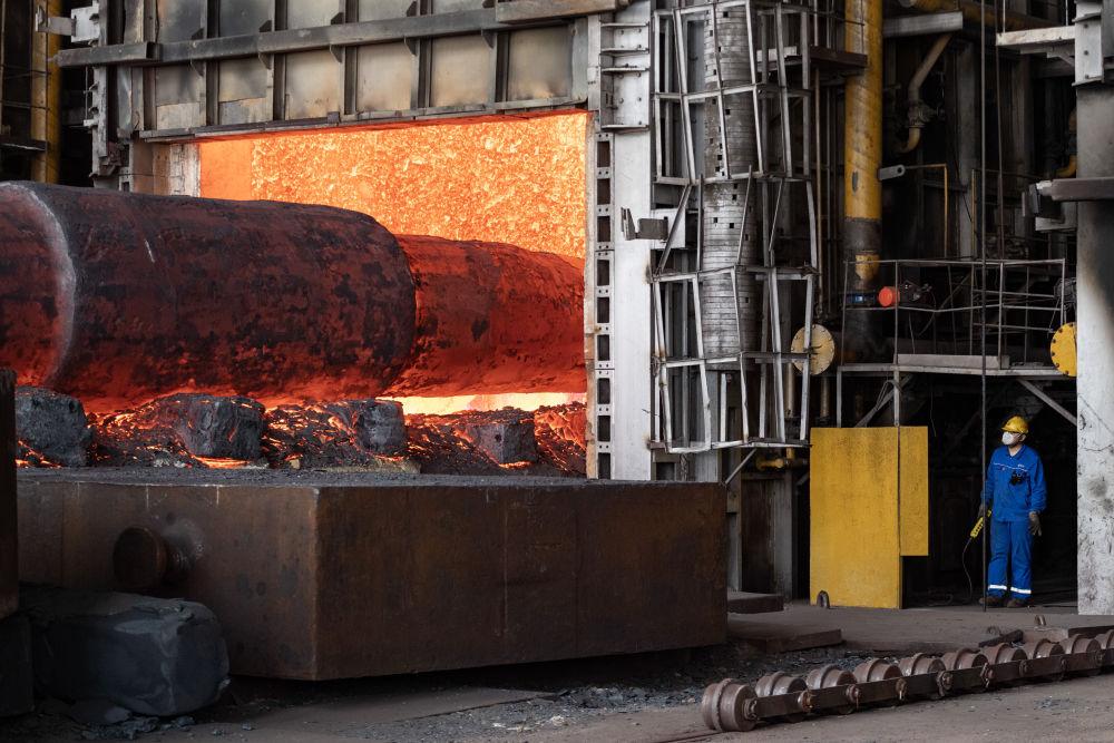 中国一重集团铸锻钢事业部水压机锻造厂车间内,一件重量超600吨的钢坯被烧得通红,正在1.5万吨自由锻造水压机上进行锻造。操作这庞然大物的,是大国工匠、中国一重集团铸锻钢事业部水压机锻造厂副厂长刘伯鸣。