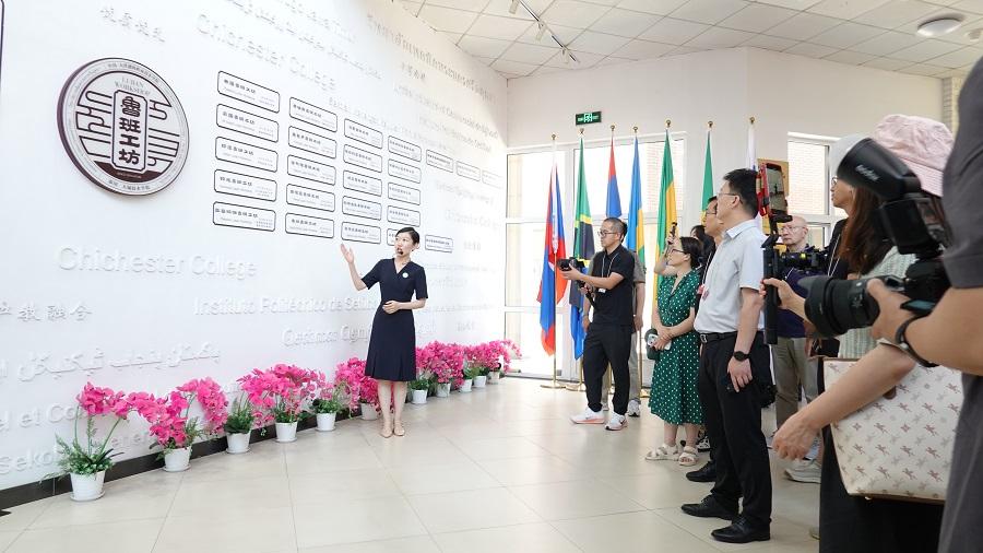 下午,嘉宾一行来到位于天津轻工职业技术学院的鲁班工坊建设·体验馆。作为中国职业教育“走出去”的重要品牌,鲁班工坊以中国古代工匠大师鲁班命名,致力于通过职业教育合作推动国际技术技能人才培养。