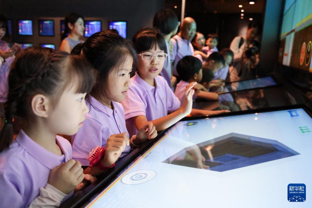 7月8日,参加夏令营的“小候鸟”在深圳中国钢结构博物馆参观。