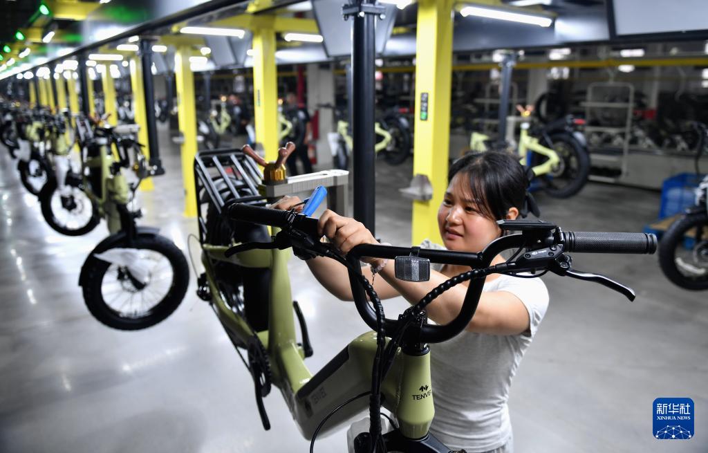 7月11日,邢台市经开区一家自行车生产企业的工人在生产线上工作。