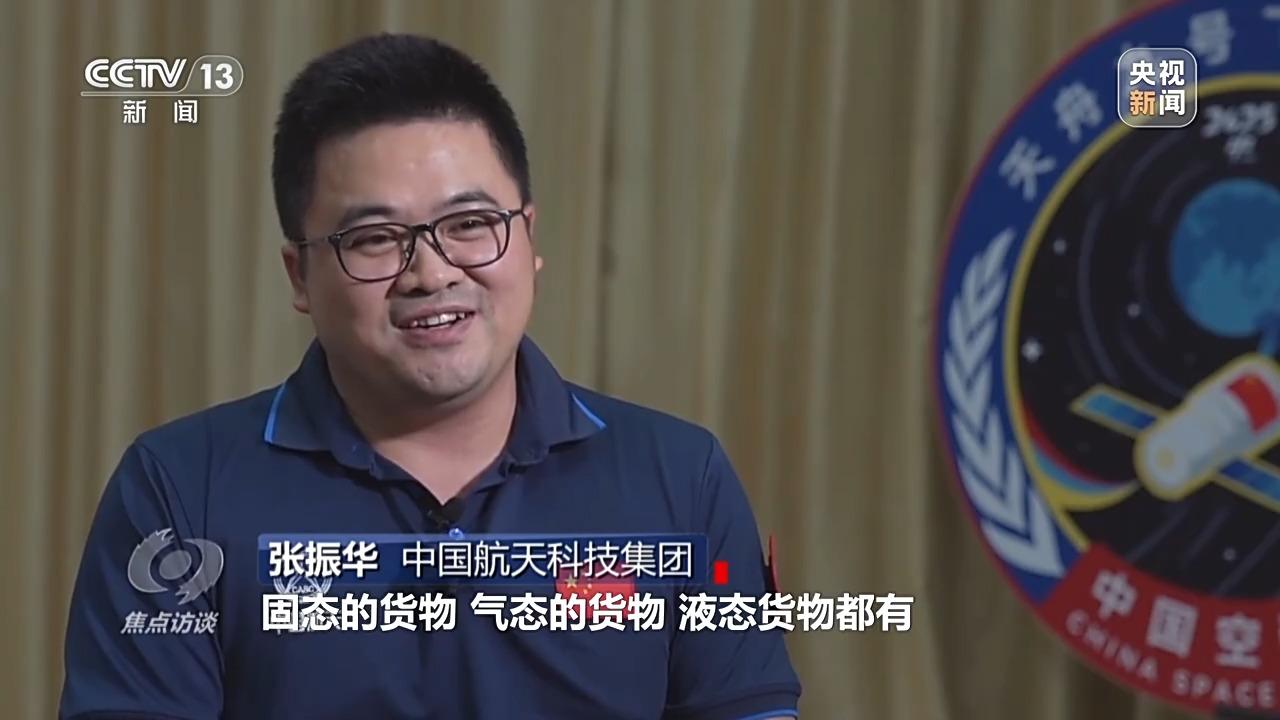 中国航天科技集团 张振华:天舟九号这次货物物资的运输量是6.5吨,是整个空间站应用与发展阶段以来,物资量运输最大的一次。这次的货运量相对于天舟八号有大概11%的提升,固态货物、气态货物、液态货物都有,货物种类非常全,还有特别大件的货物。