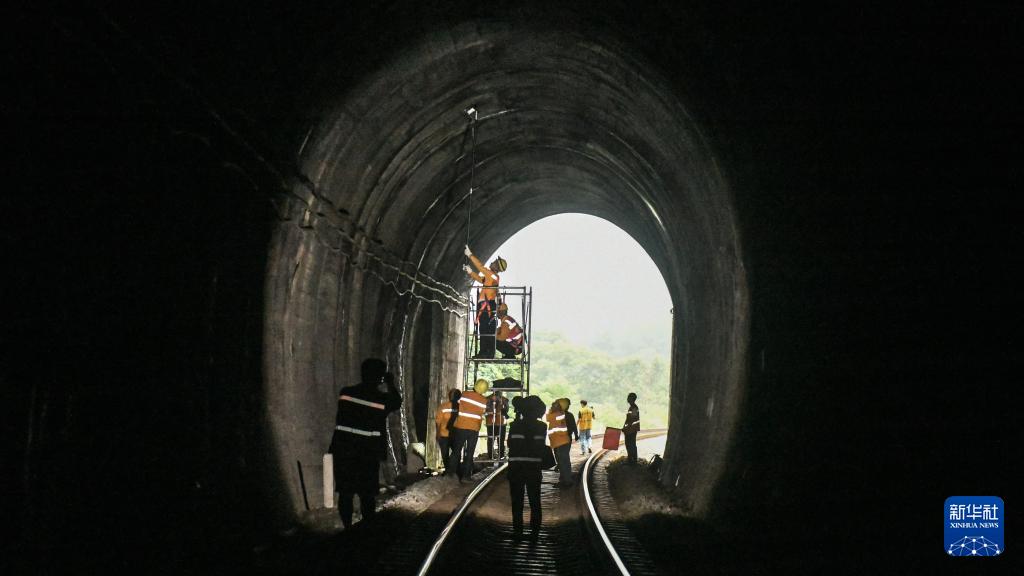 暑运期间,在湘桂铁路(广西段)沿线,国铁南宁局桂林工务段13名桥隧工人日夜穿梭于桂北的崇山峻岭间,对管段内的10座隧道、1075座涵洞进行多维度巡检、排查隐患,确保湘桂铁路线上暑运客货列车的安全运行。