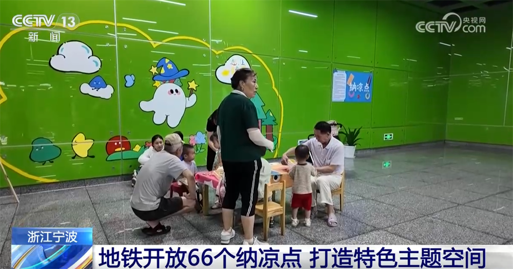在浙江宁波,宁波地铁在66个站点设立纳凉点,其中12个特色纳凉点还将清凉与文化娱乐结合起来,打造主题空间,满足不同人群需求。