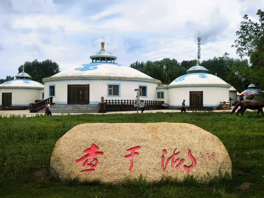 7月20日,查干湖景区内的蒙古包吸引游客驻足。