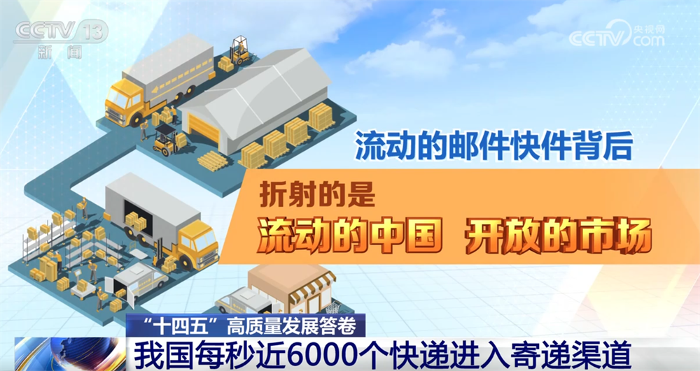 央视网消息:“十四五”期间,我国快递业务量年均增长20%,如今每一秒都有近6000个快递进入寄递渠道,通过寄递网络在国内外流动。