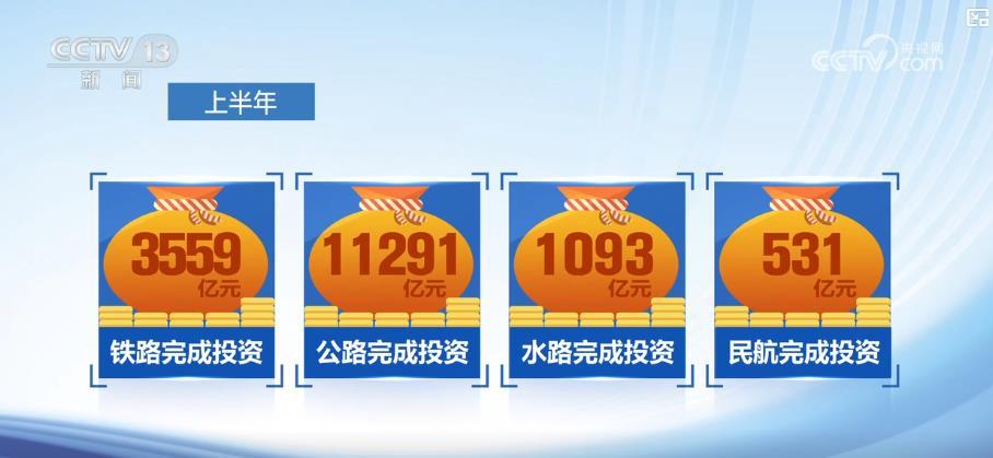 交通运输部数据显示,上半年,我国完成交通固定资产投资16474亿元,其中,铁路、公路、水路、民航分别完成投资3559亿元、11291亿元、1093亿元和531亿元。