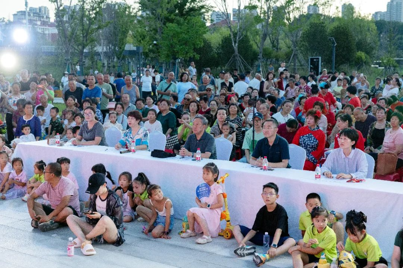 水母网讯 当夏日的晚风掠过烟台高新区的街巷,一场充满活力与温情的社区文化盛宴悄然启幕。7月25日傍晚6时许,烟台高新区科技文化主题教育基地便热闹起来,来自okayya童声合唱团等文艺团体的萌娃们率先登场,用他们稚嫩的童声、活泼的舞姿,为现场观众带来《青苹果乐园》《如愿》《祖国好》等多个节目,以萌力十足的表演点燃现场气氛。
