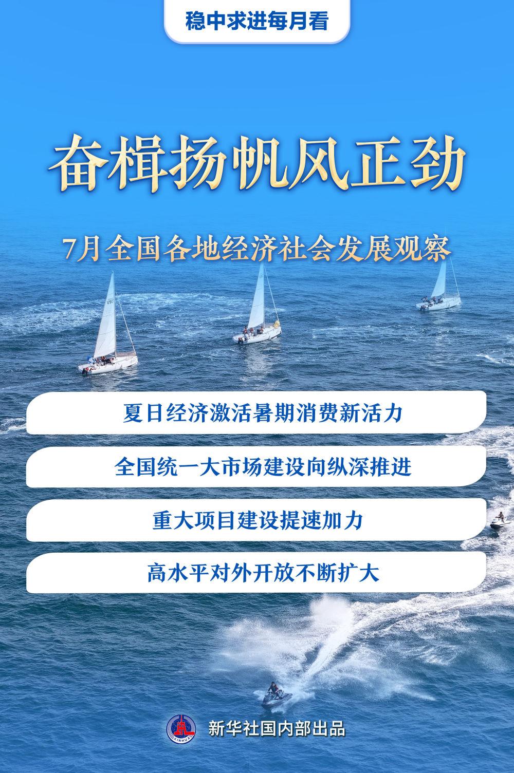 7月,下半年经济运行开局的关键时段。夏日经济激活暑期消费新活力、全国统一大市场建设向纵深推进、重大项目建设提速加力、高水平对外开放不断扩大……行至年中,各地凝聚力量,主动作为,扎实推进高质量发展。