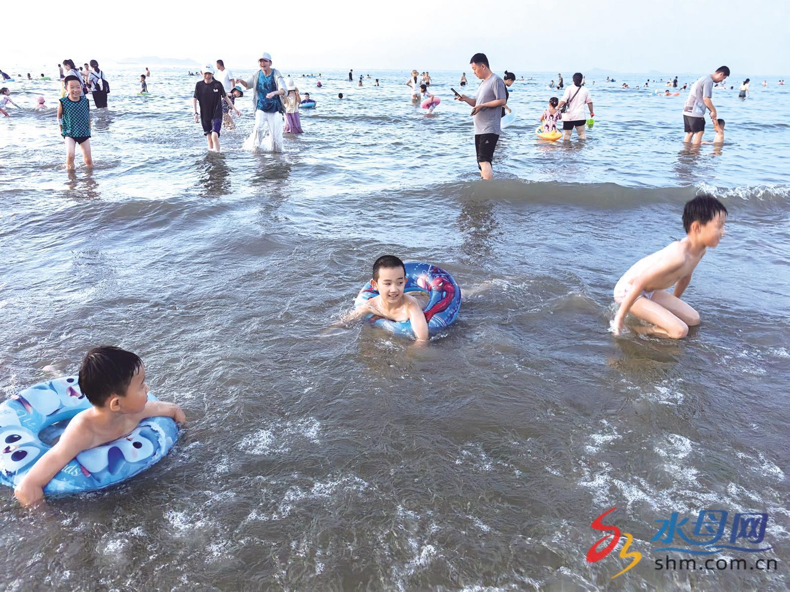近日,在家长的陪同下,孩子们在第一海水浴场开心玩耍。YMG全媒体记者 柴向阳 摄