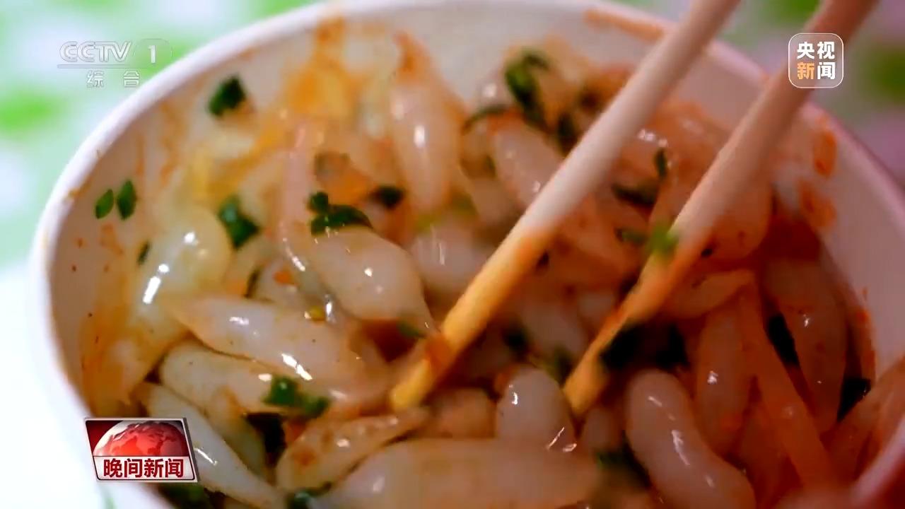 总台记者 马丽:来到古镇,当然少不了品尝本地的特色美食。这两天,平凉各地的美食都在古镇上集中展示,浆水鱼鱼、洋芋搅团、油糕等,都很受本地人的喜爱。
