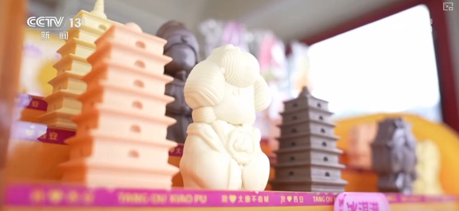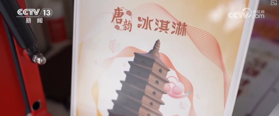 除了“冰馍馍”,还有大雁塔、唐代诗人、仕女形象的“唐韵冰淇淋”系列,以及长安的荔枝、西安城墙、永宁门等造型的文创冰淇淋,口味丰富多样。