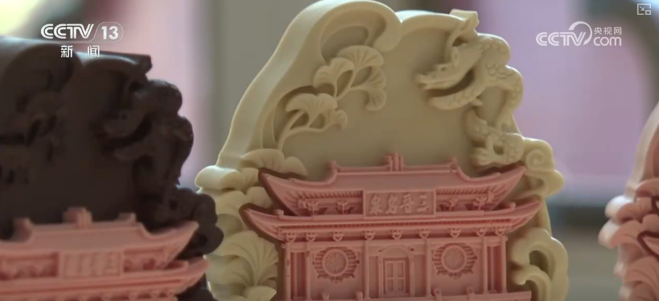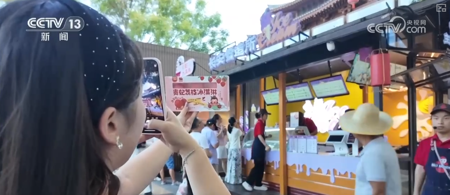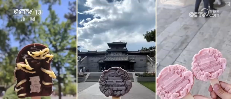 在这里,以标志性古建为灵感的文创雪糕,凭借不同口味和造型,吸引了众多游客前来拍照打卡,在炎炎夏日成为消暑解渴的“清凉伴侣”。