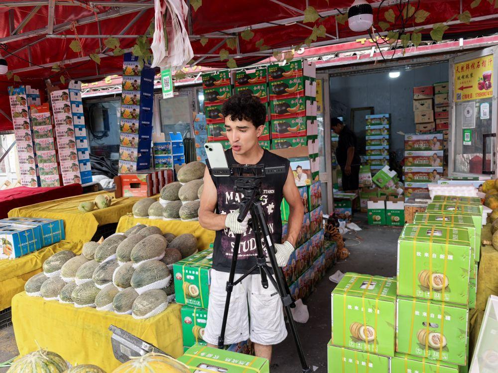 阿卜杜拉是新疆喀什人,现在和哥哥在乌鲁木齐一家农产品批发市场经营水果店。去年以来,他们尝试通过电商直播销售新疆特产老汉瓜大获成功。