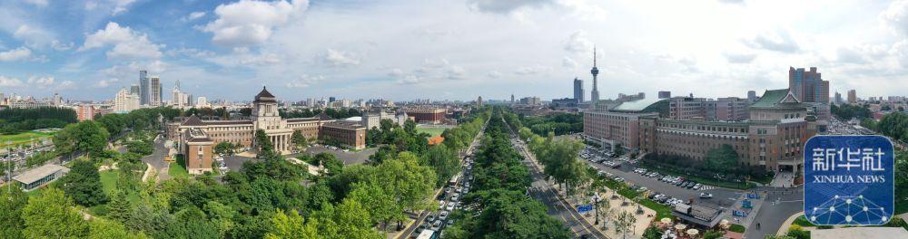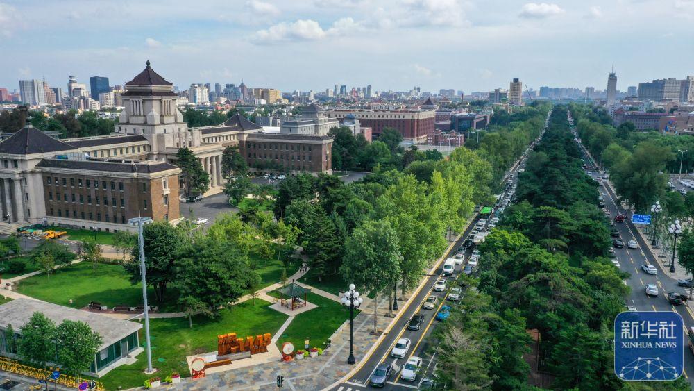 ↑ 7月30日拍摄的长春历史文化博物馆和新民大街(无人机全景拼接照片)。