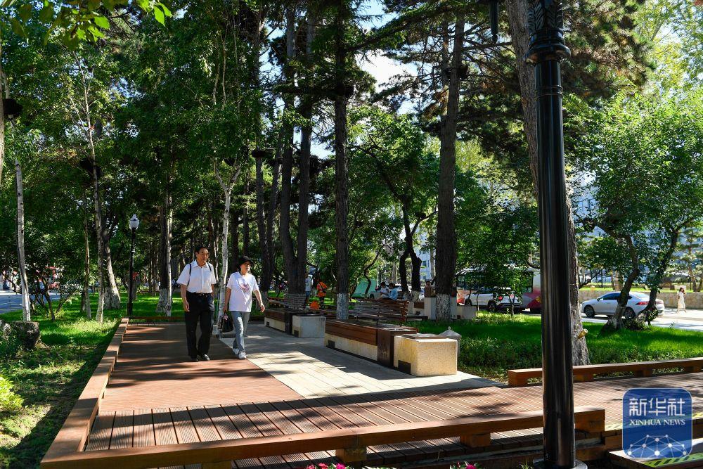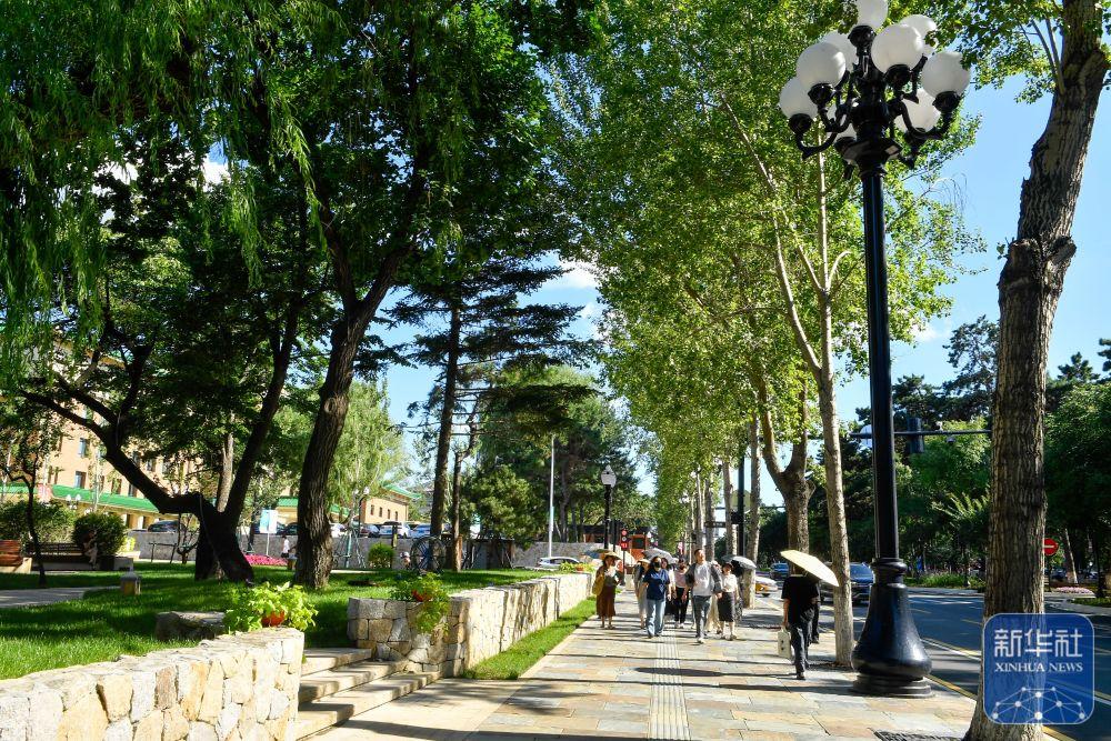 ↑ 7月30日,游客游览长春新民大街。