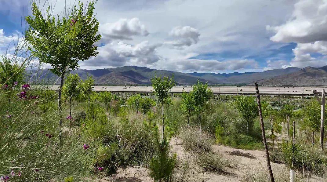 一路沿着拉萨河向西南行进,距离这里38公里的是拉萨南北山绿化工程贡嘎段。从脚下粗粝的沙土能看得出来,这里曾是一片不毛之地,现如今漫山遍野的沙柳和小树苗,让绿水青山初见雏形。4年来,包括拉萨、山南两地在内的南北山绿化工程已造林107.93万亩,栽植苗木1.2亿余株。