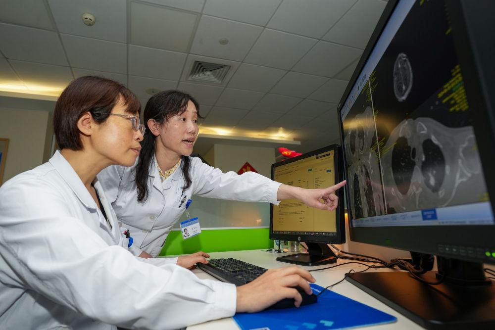 2024年8月6日,江苏省人民医院医生在放射科读片室分析医学影像,并将影像及诊断结论上传至江苏省卫生健康云影像平台,供患者在省内医院就医使用。近年来,江苏省持续推进省卫生健康云影像平台建设,实现省内影像检查结果互认。在患者省时、省心、省钱的同时,医生的诊疗效率和准确性也不断提升。