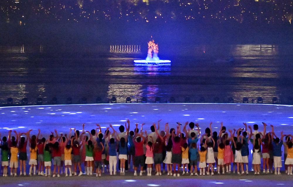 当世运会历史上第一支主火炬在湖中点燃,熊熊火焰从水中喷薄而出。水火相生,这是科技创新的突破,更是思维焕新的跨越。