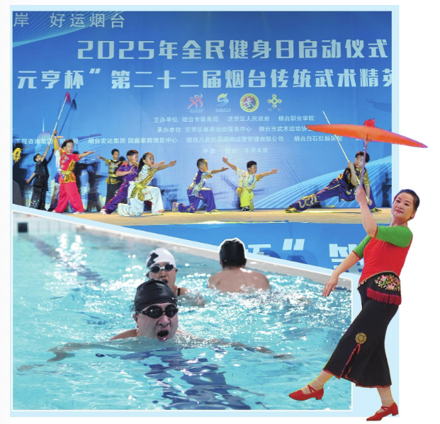 今年8月8日是第17个“全民健身日”,市体育局将围绕“仙境海岸·好运烟台”主题,在全市范围内开展涵盖武术、足球、篮球等传统项目及有氧健身、舞蹈等活动,形成多板块、多项目的全民健身矩阵。