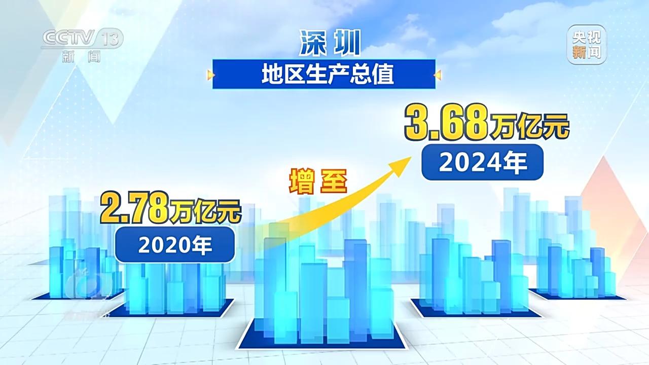 改革为发展带来了澎湃动力。如今,深圳的地区生产总值从2020年的2.78万亿元增至2024年的3.68万亿元,年均增长5.5%;全社会研发投入从2020年的1510.8亿元增加至2023年的2236.6亿元,年均增长13.9%;规上工业总产值、工业增加值连续3年实现全国城市“双第一”。